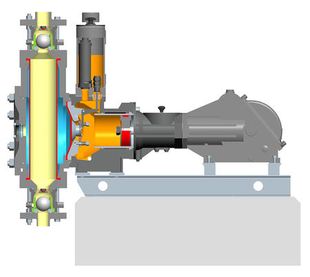 Process design Each individual part that is theoretically subject to wear can be separately removed without prior dismantling of adjacent elements. Modification of the traditional flat diaphragm into a hose-diaphragm No settling in the clamping area.The diaphragms operate independently of each other and ensure operability as traditional diaphragm piston pump even in case of hose-diaphragm failure.