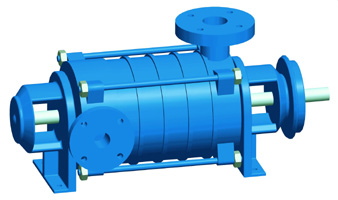 The MP high pressure multi-stage pump is entirely manufactured from castings. The rotor package is locked at both ends of the pump shaft, which ensures an optimal distribution of the radial forces on the rotor package. The pump is robustly developed and built for large lifespan.