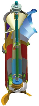 Option with hydraulically adjustable impeller blades: The hydraulic impeller blade adjustment mechanism allows the impeller angle to be varied continuously during operation. Thus, the operator can react promptly to changes in flow rate and head.